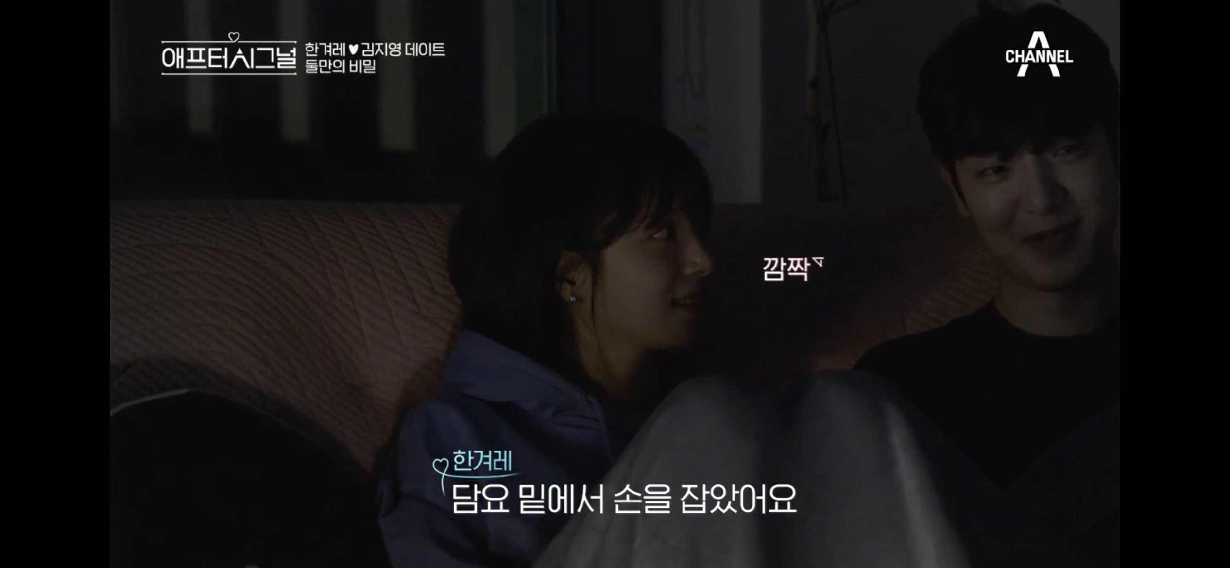 이번에는 겨레와 지영의 데이트입니다. 둘은 하트시그널4 촬영 중 여수 여행을 다녀와서 같이 영화를 보면서 담요를 덮었는데, 담요 밑에서 손을 잡았다고 합니다..!!! 하트시그널4 방송에도 방영되지 않은 장면이라 MC들과 게스트로 출연한 후신과 민규도 모두 놀라움을 감추지 못했습니다. 최종선택 직전이라 시그널이 뻔할까봐 방송에는 편집된 것으로 보이는데, 둘의 표정에서 설렘이 가득하더라구요. 겨레와 지영은 이 날을 회상하면서, 설레서 영화 내용도 기억이 안난다고 말했습니다.