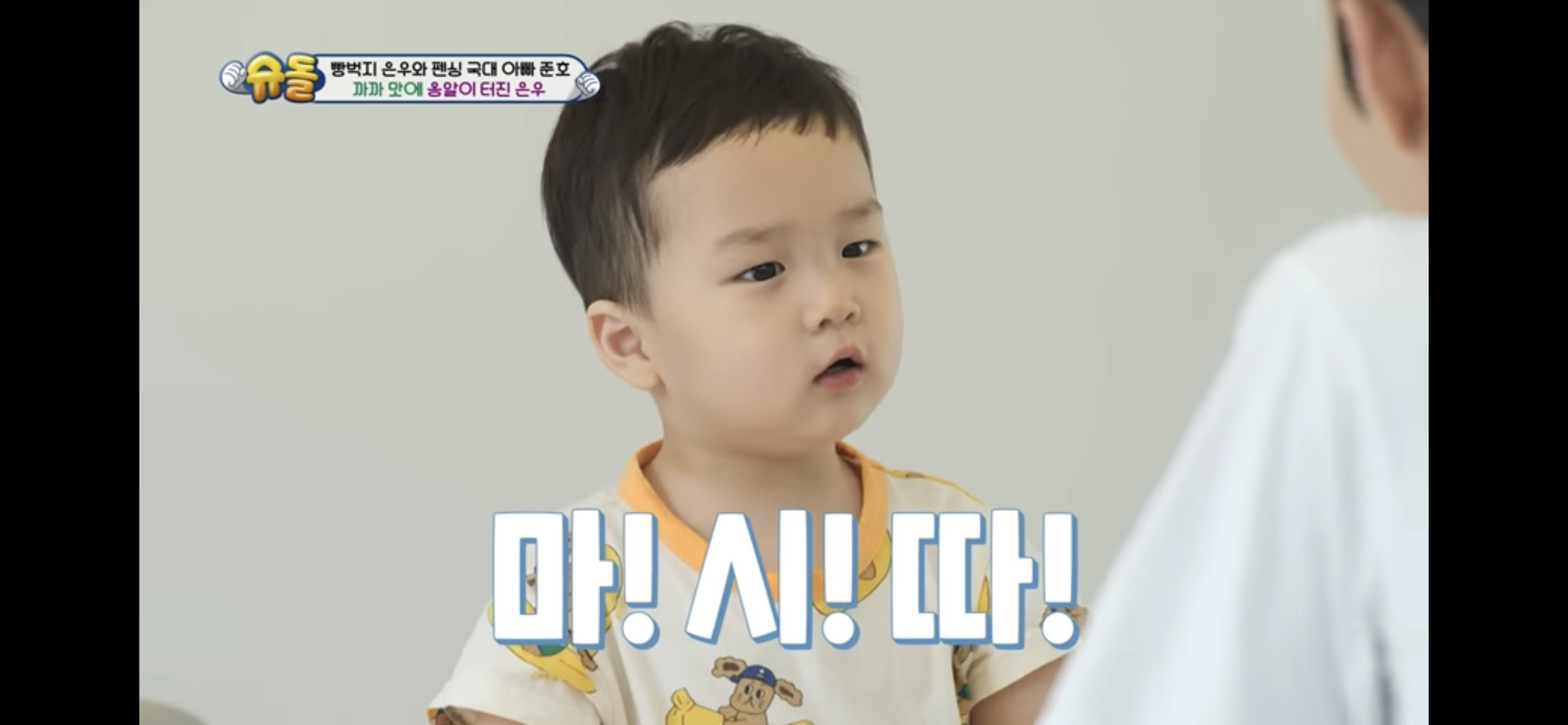 슈돌 은우 김준호 펜싱선수 아들 나이 와이프 KBS2에서 방영되는 '슈퍼맨이 돌아왔다'에 펜싱 선수 김준호의 아들 은우가 나오는데 너무 귀엽더라고요! 슈돌은 몇년전에 추성훈 선수의 딸 사랑이가 나왔을 때 잠깐 보고 보지 않았었는데, SNS에서 우연히 슈돌에서 은우의 영상을 보고 반해버려서 관련 영상을 계속 찾아보게 되었어요. 아빠 김준호가 은우에게 딸기 과자를 주면서 "은우야 '주세요' 그래야지 '주'해봐"라고 했는데, 은우가 갑자기 "마!"라고 하더니 곧이어 "시!", "따!"라고 한 글자씩 또박또박 말하는 장면이에요. "마시따"가 은우 23개월 인생 처음으로 구사한 문장이라는게 너무 귀엽죠♥ 또 아빠 김준호가 "동생(정우) 좀 보고있어. 동생 놀아줘~" 했더니 동생한테 가서 뚫어지게 쳐다보는 은우ㅋㅋ..